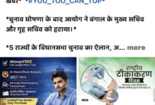 - #Metronewz:16/03/2026: सोमवार की बड़ी खबरें* *#YOU_TOO_CAN_TOP* *चुनाव घोषणा के बाद आयोग ने बंगाल के मुख्य सचिव और गृह सचिव को हटाया।* *5 राज्यों के विधानसभा चुनाव का ऐलान, अप्रैल में मतदान; 4 मई को आएंगे नतीजे।* *अमेरिकी राष्ट्रपति ट्रंप की कट्टर समर्थक लारा लूमर ने भारत विरोधी टिप्पणियों के लिए मांगी माफी।*