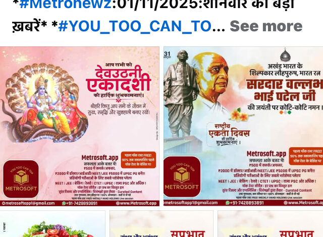 *#Metronewz:01/11/2025:शनिवार की बड़ी ख़बरें* *#YOU_TOO_CAN_TOP*