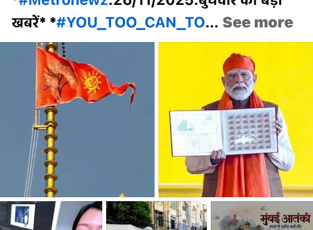 #Metronewz:26/11/2025:बुधवार की बड़ी खबरें* *#YOU_TOO_CAN_TOP* *'चाहे चीन कुछ भी बोले, अरुणाचल भारत का अभिन्न अंग', विदेश मंत्रालय का ड्रैगन को करारा जवाब, कहां महिला के पास था वैध पासपोर्ट।* *अयोध्या राम मंदिर पर फहराई धर्मध्वजा, मोदी भावुक हुए:बोले- अब मानसिक गुलामी से मुक्ति का लक्ष्य; इसने राम को भी काल्पनिक बता दिया।*