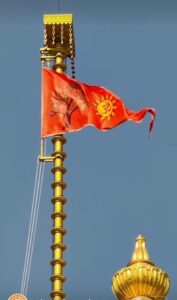 *अयोध्या राम मंदिर: अयोध्या में राम मंदिर के शिखर पर धर्म ध्वजा फहराई गई है, जिससे भारतीय सभ्यता के पुनर्जागरण का प्रतीक है।*