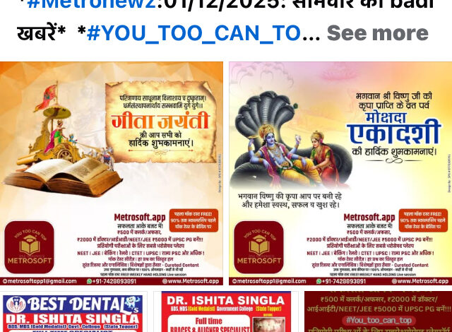 *#Metronewz:01/12/2025: सोमवार की badi खबरें* *#YOU_TOO_CAN_TOP*