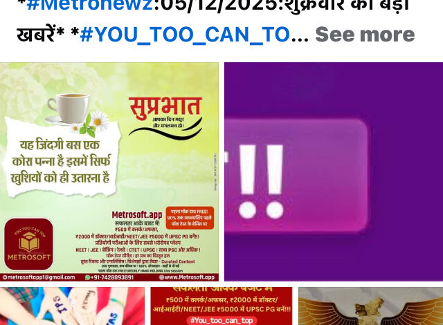 *#Metronewz:05/12/2025:शुक्रवार की बड़ी खबरें* *#YOU_TOO_CAN_TOP*