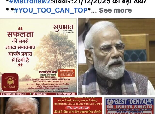 *#Metronewz:रविवार:21/12/2025 की बड़ी खबरें * *#YOU_TOO_CAN_TOP*