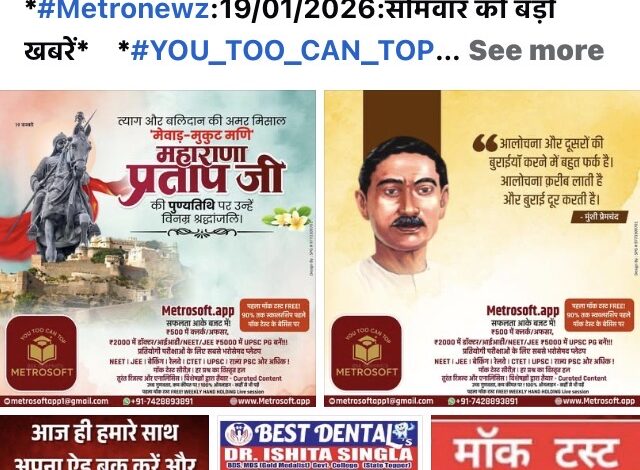 *#Metronewz:19/01/2026:सोमवार की बड़ी खबरें* *#YOU_TOO_CAN_TOP*