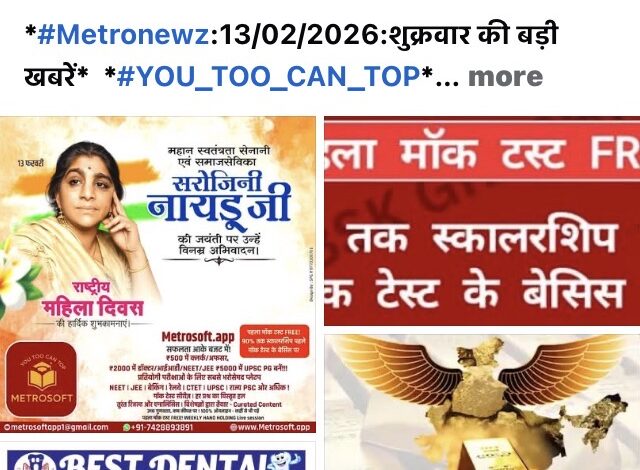 *#Metronewz:13/02/2026:शुक्रवार की बड़ी खबरें* *#YOU_TOO_CAN_TOP*