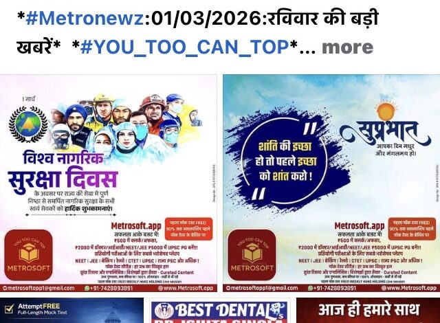 *#Metronewz:01/03/2026:रविवार की बड़ी खबरें* *#YOU_TOO_CAN_TOP*