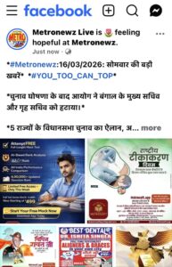 #Metronewz:16/03/2026: सोमवार की बड़ी खबरें* *#YOU_TOO_CAN_TOP* *चुनाव घोषणा के बाद आयोग ने बंगाल के मुख्य सचिव और गृह सचिव को हटाया।* *5 राज्यों के विधानसभा चुनाव का ऐलान, अप्रैल में मतदान; 4 मई को आएंगे नतीजे।* *अमेरिकी राष्ट्रपति ट्रंप की कट्टर समर्थक लारा लूमर ने भारत विरोधी टिप्पणियों के लिए मांगी माफी।*
