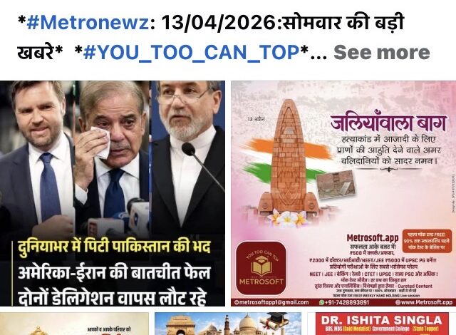 *#Metronewz: 13/04/2026:सोमवार की बड़ी खबरे* *#YOU_TOO_CAN_TOP*
