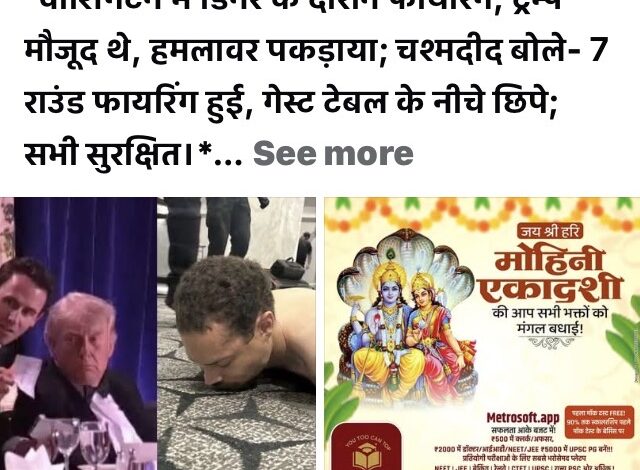 *#Metronewz:27/04/2026:सोमवार की बड़ी खबरे* *#YOU_TOO_CAN_TOP* *वॉशिंगटन में डिनर के दौरान फायरिंग, ट्रम्प मौजूद थे, हमलावर पकड़ाया; चश्मदीद बोले- 7 राउंड फायरिंग हुई, गेस्ट टेबल के नीचे छिपे; सभी सुरक्षित।* *AAP सरकार ने भज्जी से पंजाब पुलिस की सिक्योरिटी छीनी,